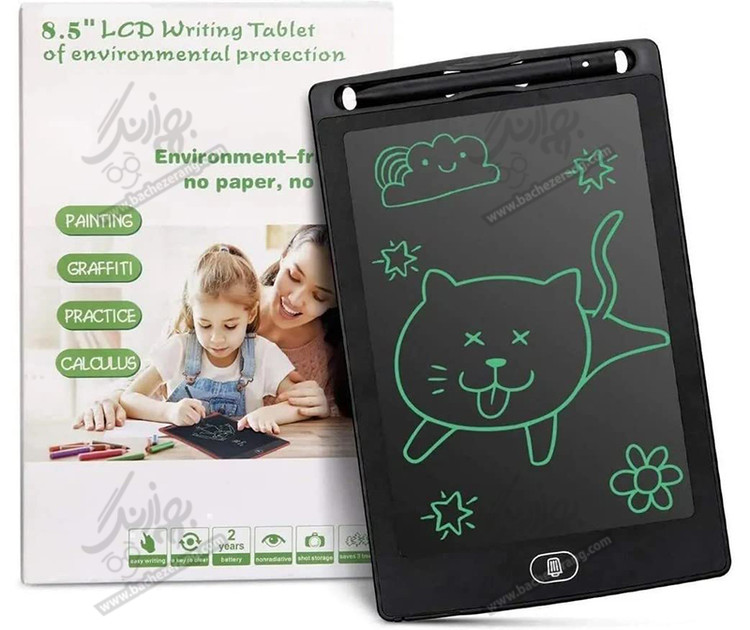 تبلت جادویی نقاشی رنگی 8.5 اینچ یک اسباب بازی آموزشی بسیار جذاب است که برای تمام سنین مناسب است و شما به راحتی می توانید آن را به عزیزانتان هدیه دهید و آنها را خوشحال کنید . تبلت جادویی نقاشی رنگی 8.5 اینچ مناسب یادداشت، نقاشی و طراحی برای کودکان و بزرگسالان است. این تخته جادویی نیاز به کاغذ ندارد. این تبلت دارای یک صفحه LCD حساس به فشار است که یک قلم به همراه دارد. در پایین تبلت یک دکمه هم وجود دارد که مخصوص پاک کردن است .